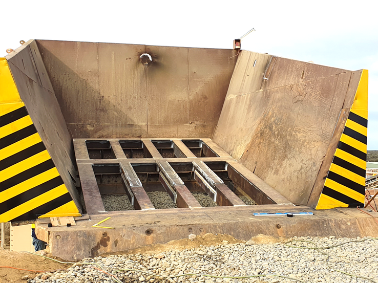 Driven by wire rope winder, travelling >300m while grain is conveyed, the device can start and stop at any position under control from a remote HMI panel. BMmech's scope included Mech, Struct, Elec & Controls engineering disciplines, fully designed to shop detailing.
